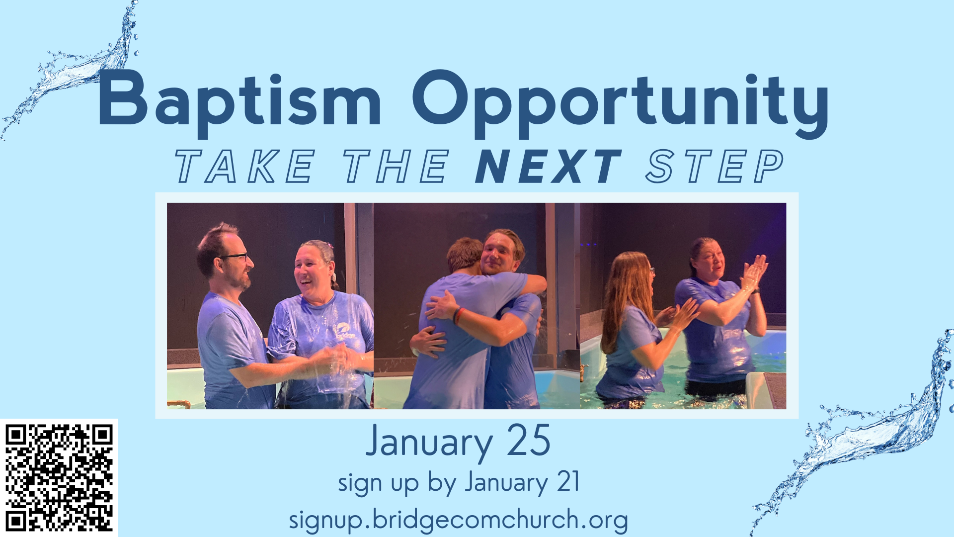To give you every opportunity to publicly declare your commitment to Jesus, we provide regular baptism opportunities. Sign up now and invite your family & friends to witness you take this next step in your faith.